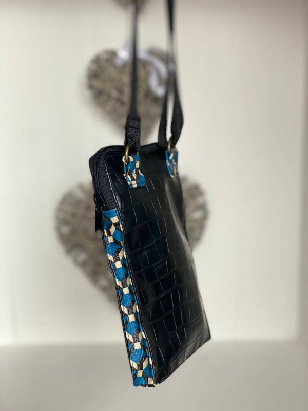 Pochette téléphone simili croco noir